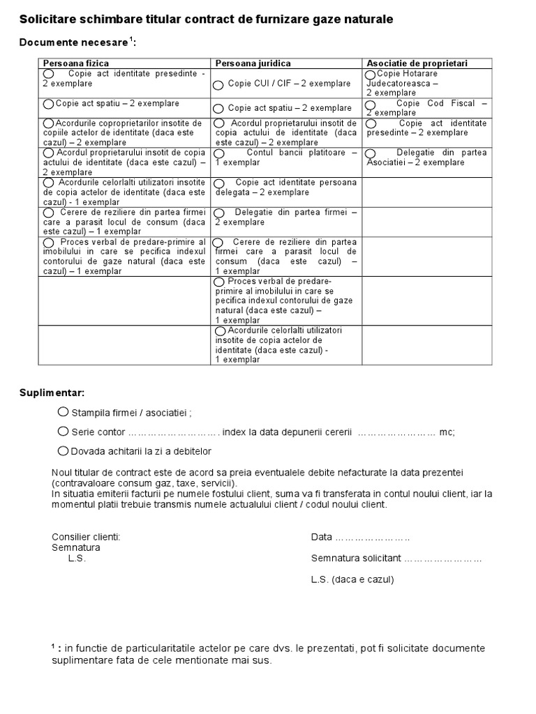 Solicitare Schimbare Titular Contract De Furnizare Gaze Naturale Pdf