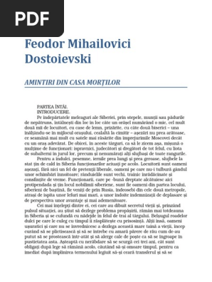 Amintiri Din Casa Mortilor Feodor Mihailovici Dostoievski Pdf