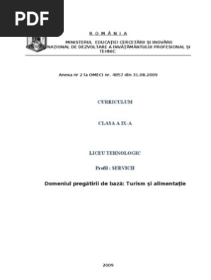 Programa Sc Turism Cls A Ix A Liceu Filiera Tehnologica