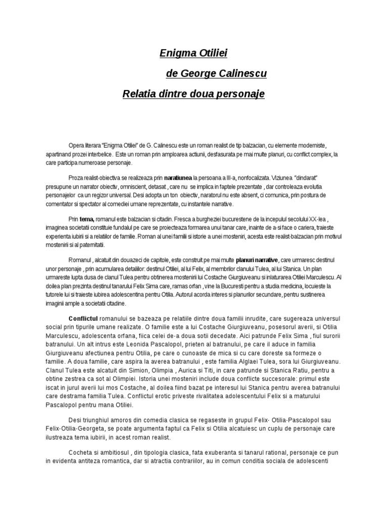 Enigma Otiliei Relatia Dintre Doua Personaje Docx U201eenigma Otiliei U201e Relatia Dintre Doua Personaje G Calinescu G Calinescu Este O Personalitate Course Hero