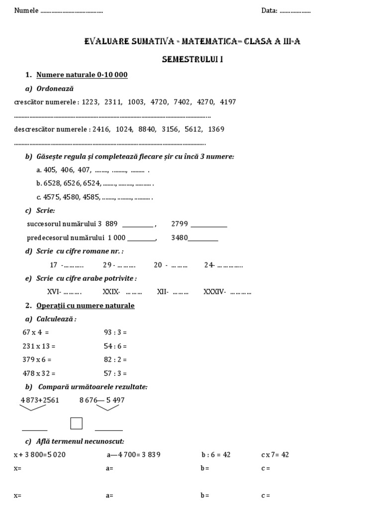 Free Clasa A Ii A Clr Evaluare Sumativă Semestrială Fișă De