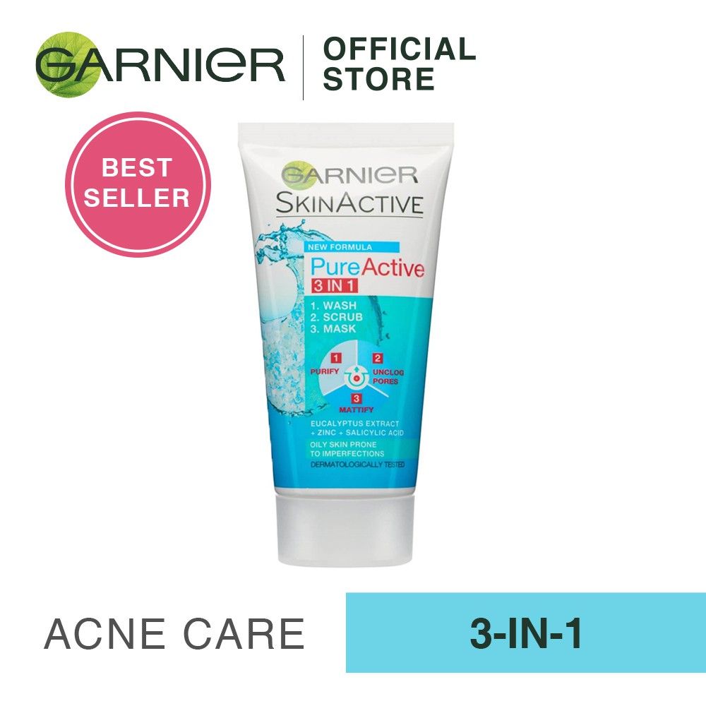 Garnier Skin Pure Active 3 In 1 Wash Scrub And Mask 150ml Amazon Sg Health Personal Care