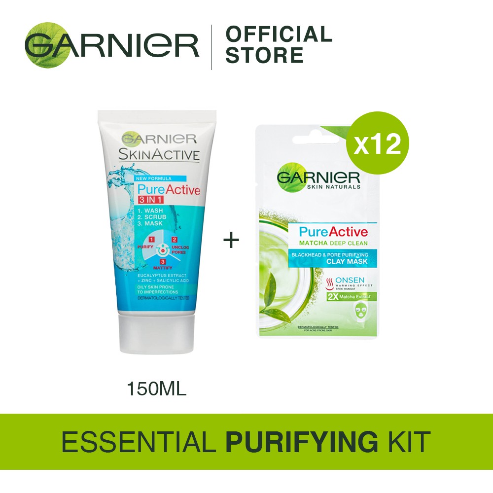 Essential Purifying Kit Garnier Pure Active 3 In 1 Matcha Clay Mask Box Shopee Singapore