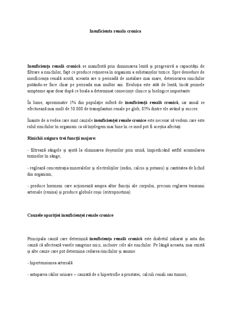 Insuficienta Renala Cronica Tratament Medicamentos