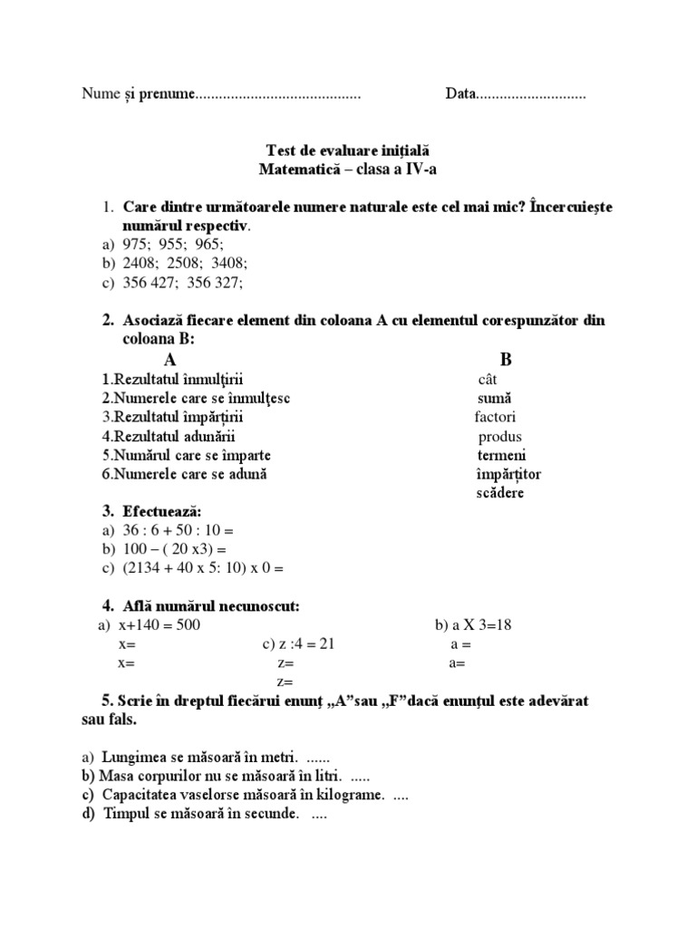 An Scolar 2019 2020 Clasa A V A Test Initial La Matematica Cu Rezolvare Jitaruionelblog Pregatire Bac Si Evaluarea Nationala 2021 La Matematica Si Alte Materii Materiale Lectii Formule Exercitii Rezolvate Matematica Gimnaziu