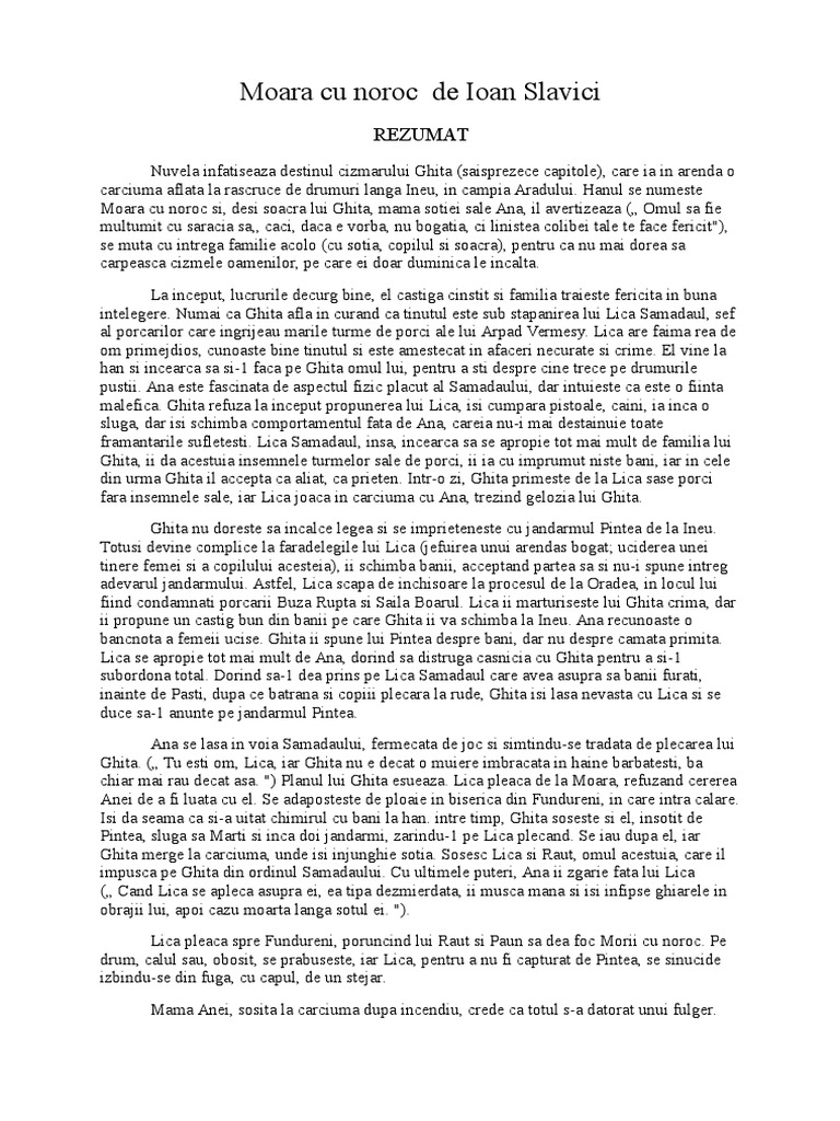 Moara Cu Noroc Rezumat Rezumat Wattpad