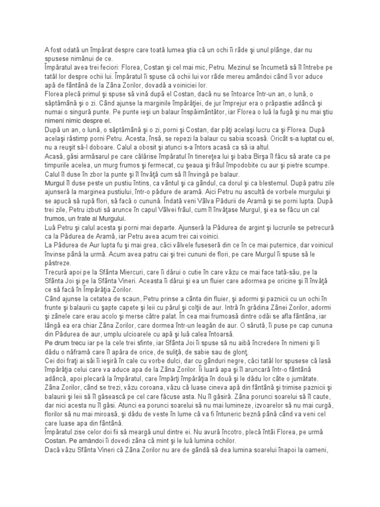 Care Este Rezumatul Povesti Zana Zorilor De Ioan Slavici Brainly Ro