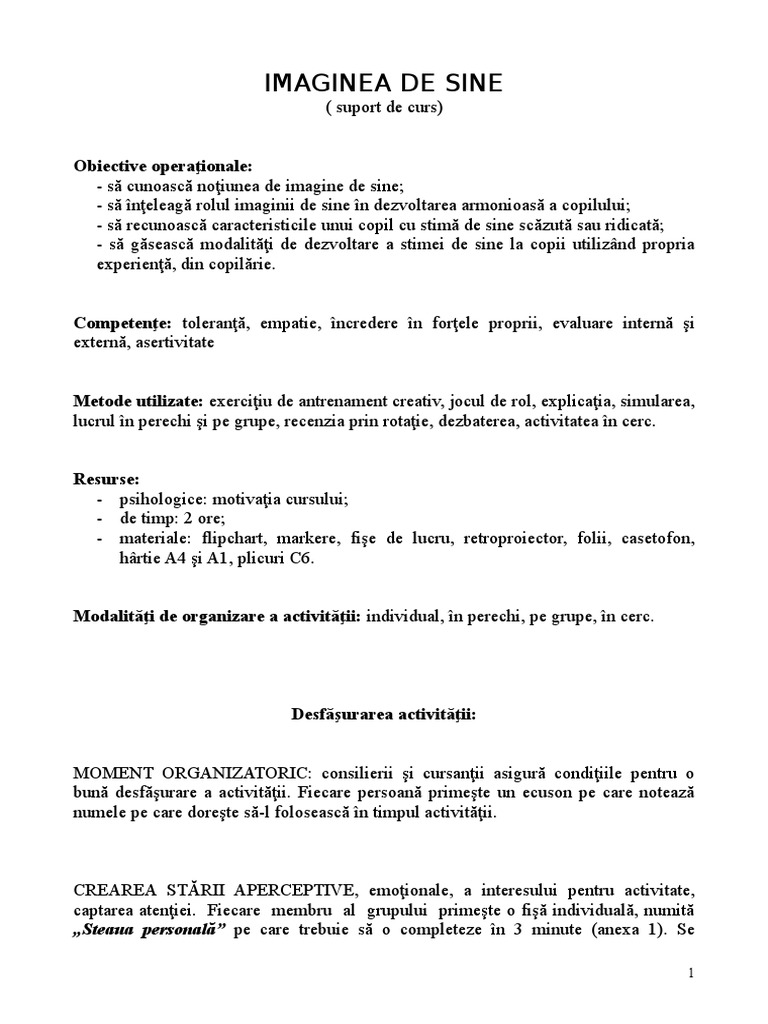 Exercitii Imaginea De Sine