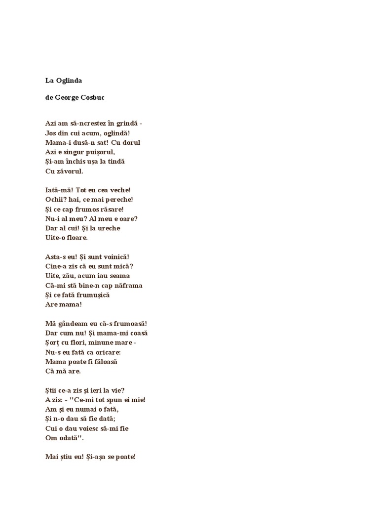 La Oglinda George Cosbuc Interpretata Si Ilustrata Cu Fotografii Al