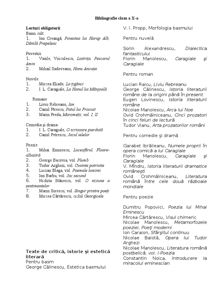 Bibliografie Clasa A 10 A