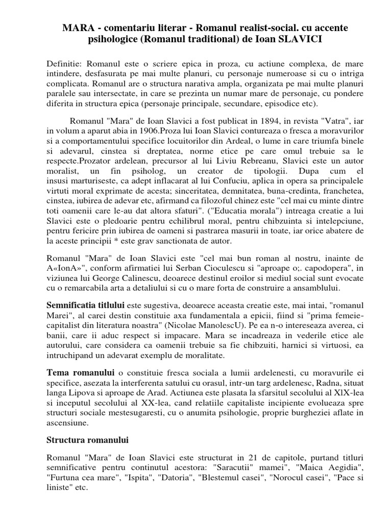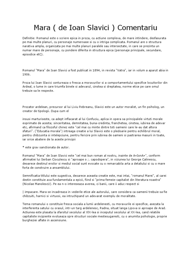 Mara Comentariu De Ioan Slavici