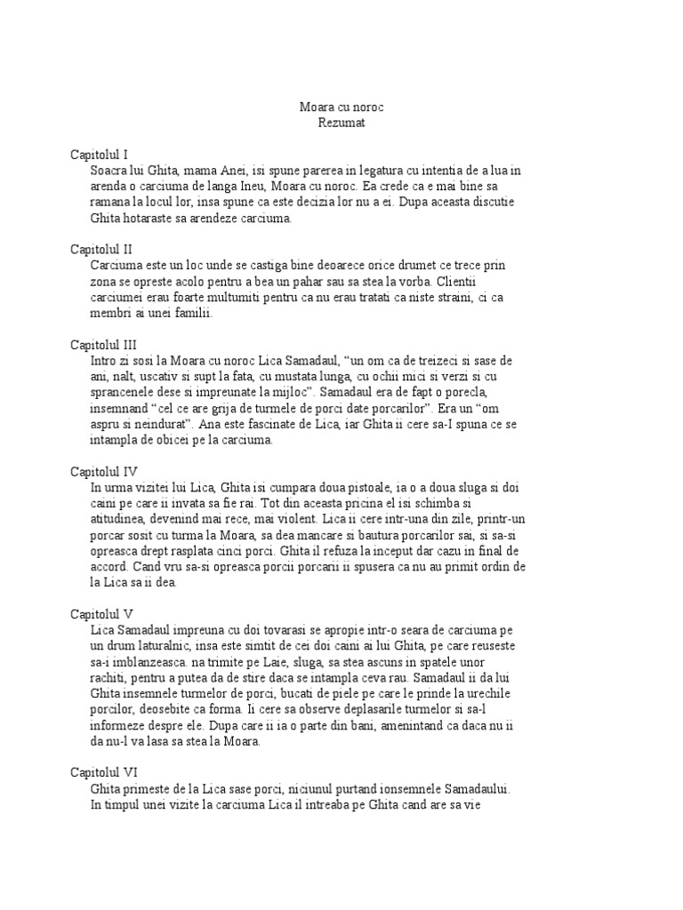 Moara Cu Noroc Rezumat Rezumat Wattpad