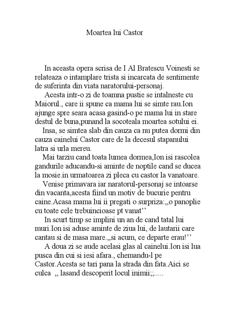 Moartea Lui Castor Ioan A Br Voinesti Nuvela Odt