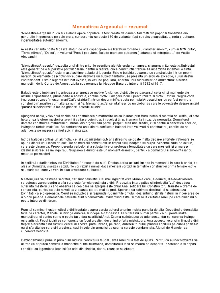 Monastirea Argesului Rezumat