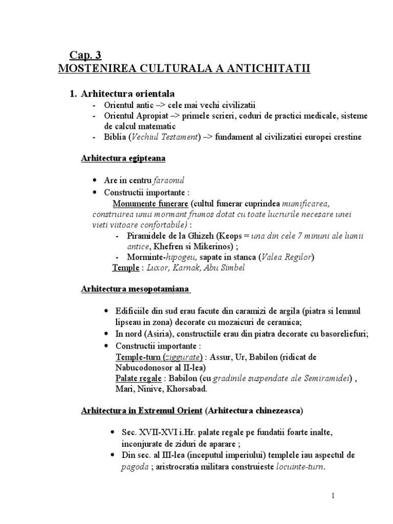 Mostenirea Culturală A Antichităţii Arhitectura Orientală