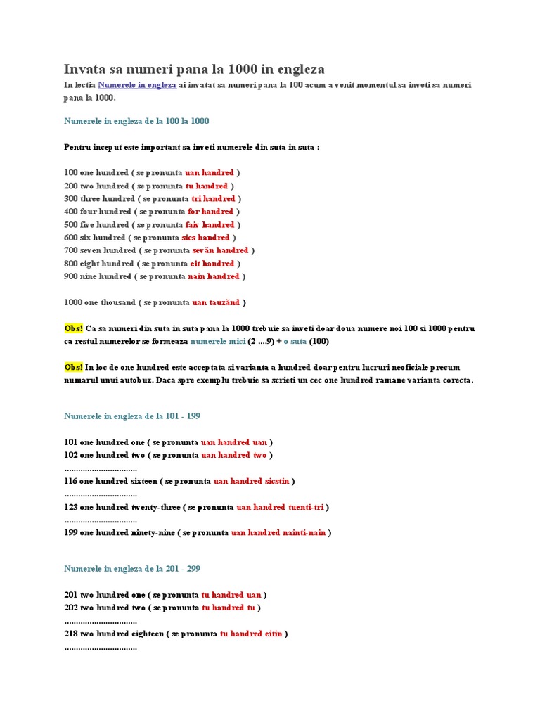 Invata Sa Numeri Pana La 1000 In Engleza