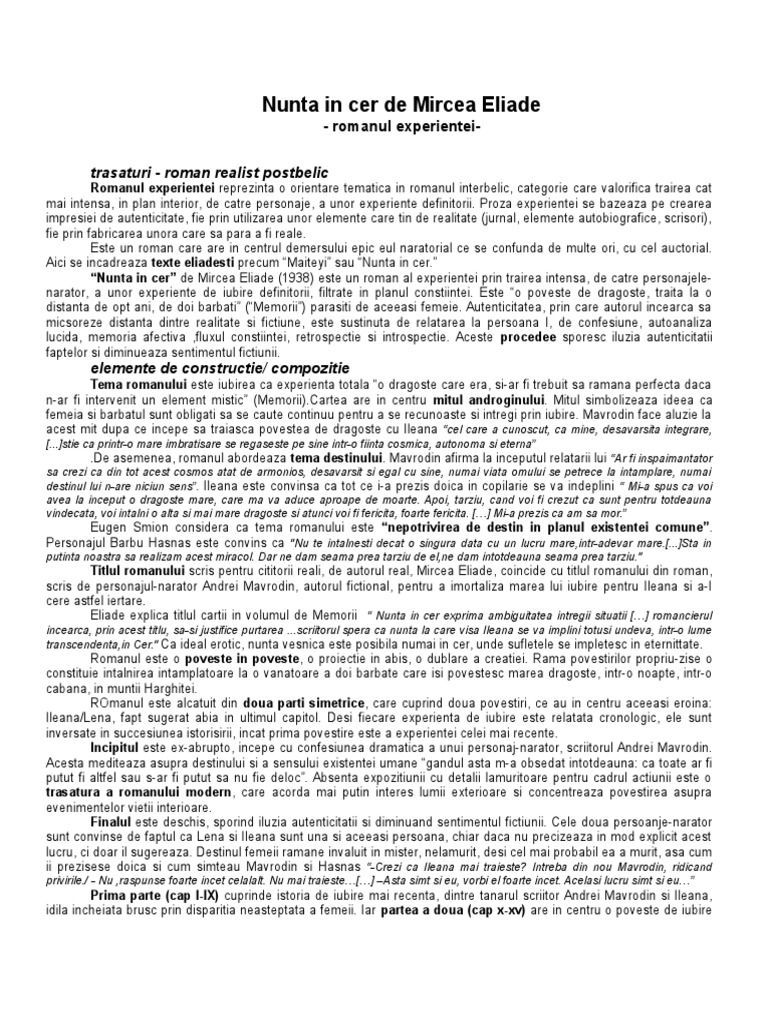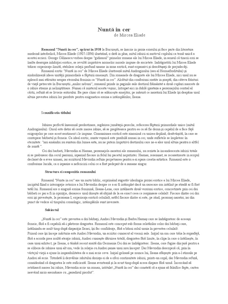 Referat Nunta In Cer Mircea Eliade Romana 292985 Regielive