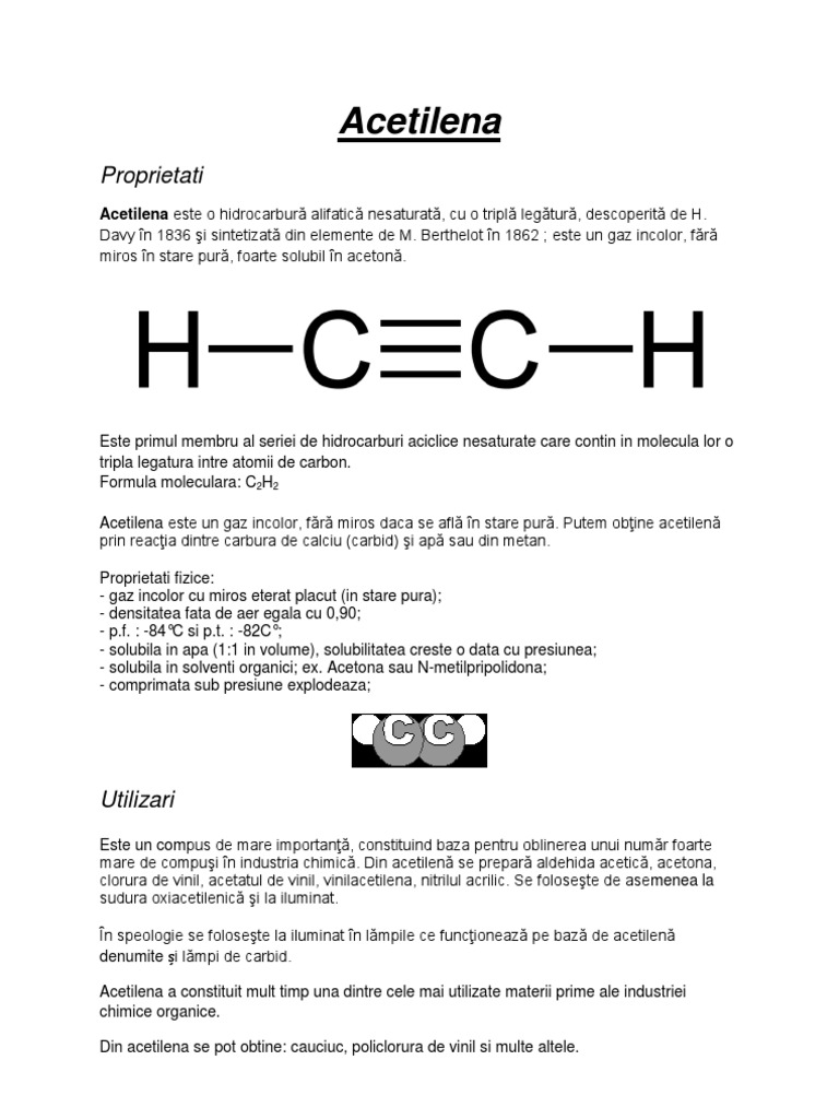 Obtinerea Acetilenei Din Carbid Chimie Cds 12 C Cristina Diana