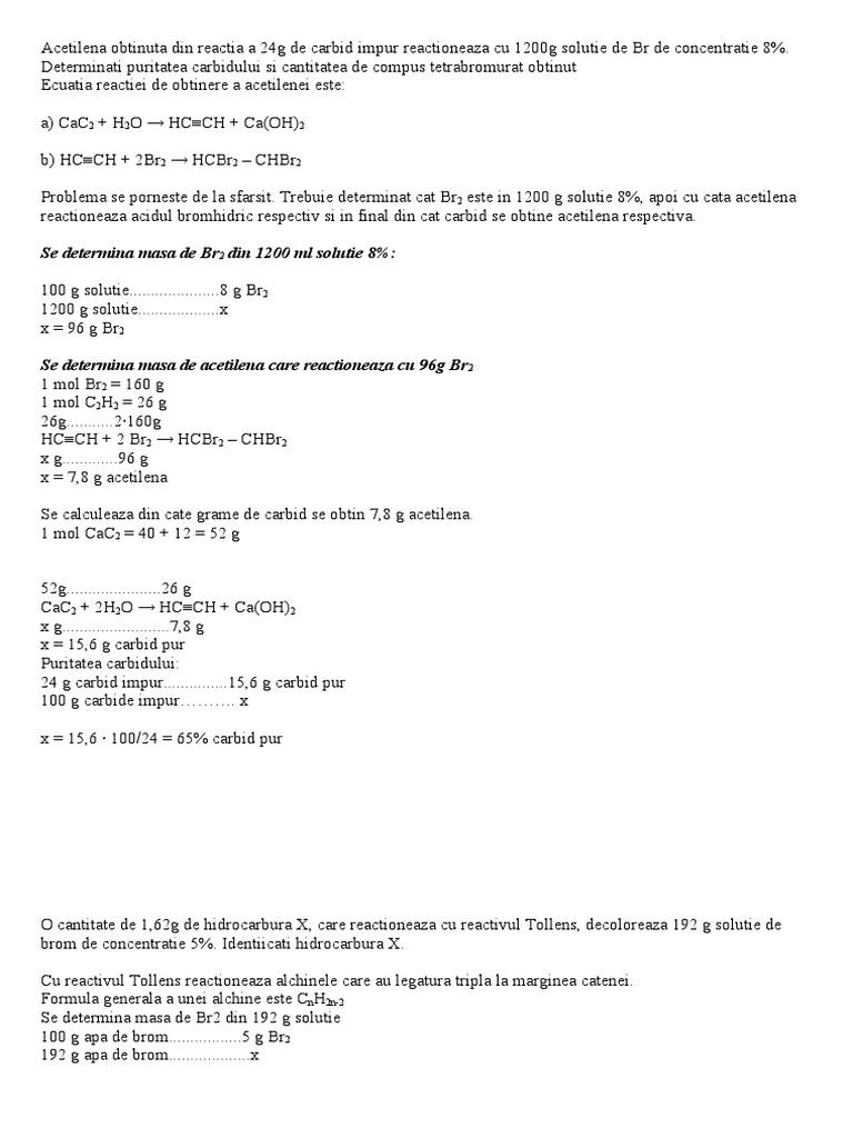 Acetilena Obtinuta Din Reactia Cu Apa A 24g Carbid Impur