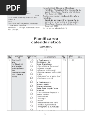 Free Clasa Pregătitoare Model De Planificare Anuală Detaliată