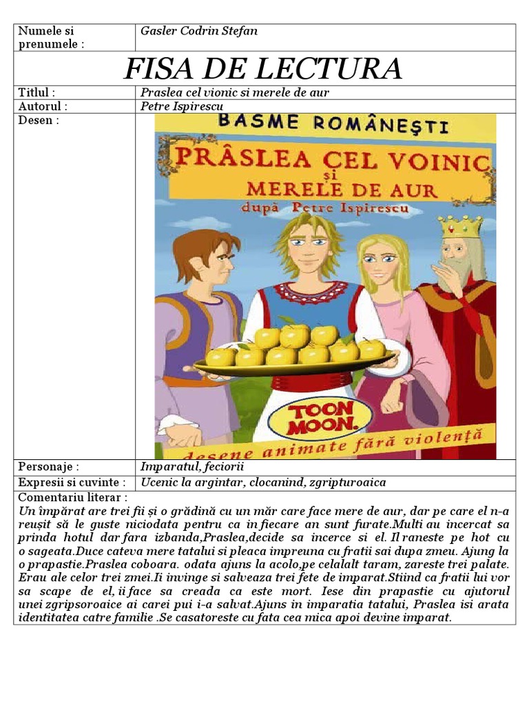 Petre Ispirescu Praslea Cel Voinic Si Merele De Aur Doc