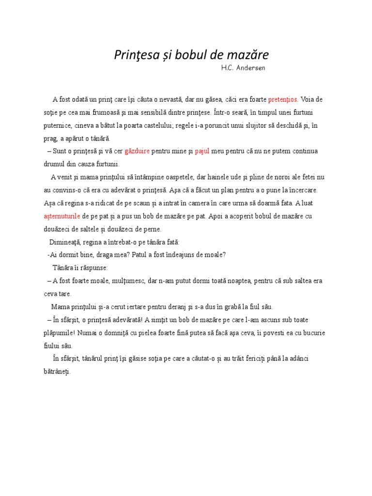 Prinţesa Si Mazărea Poveste De Hans Christian Andersen