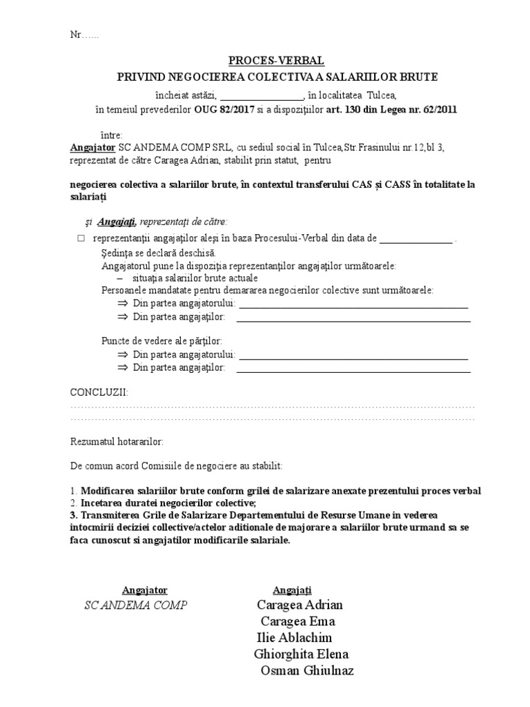 Proces Verbal De Negociere Model