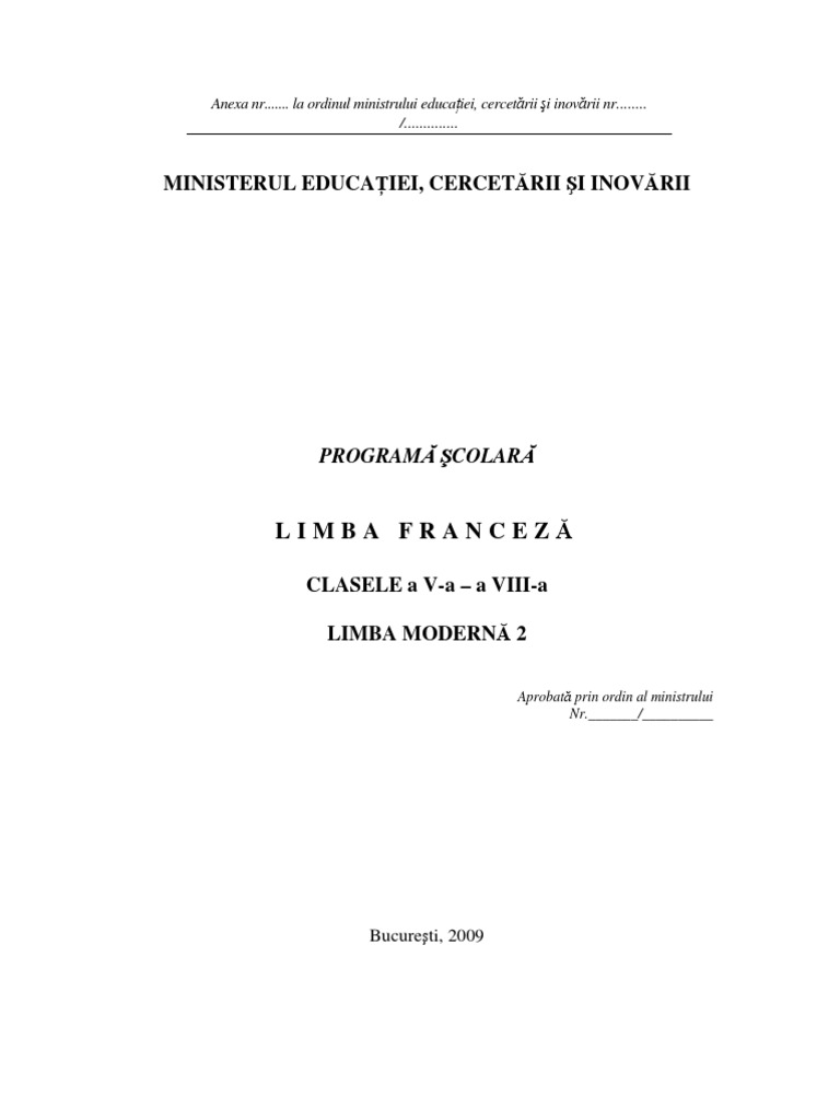 Programa Limba Franceza A Doua Sansa