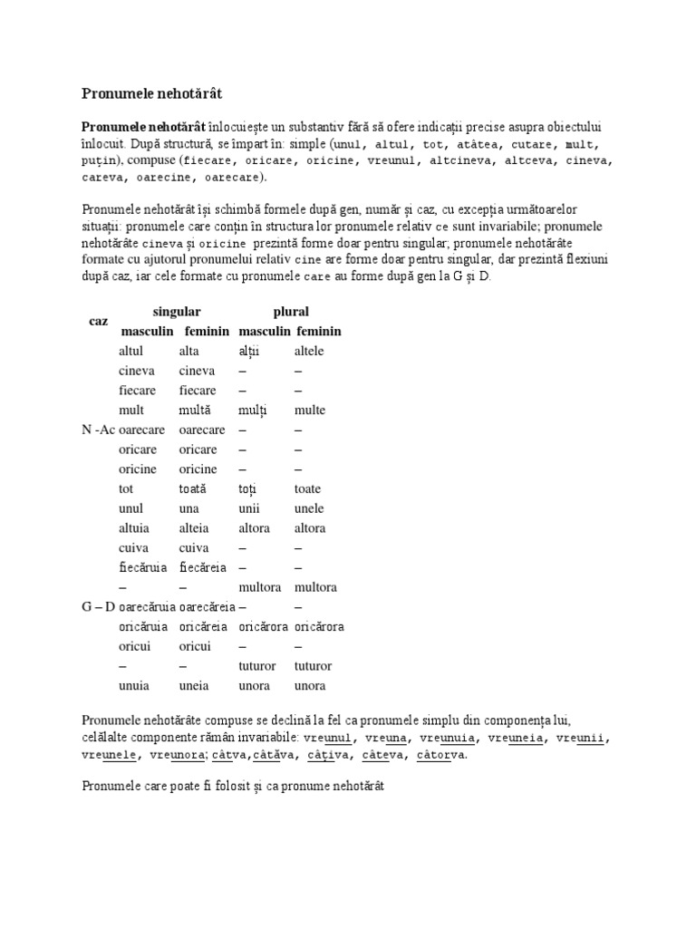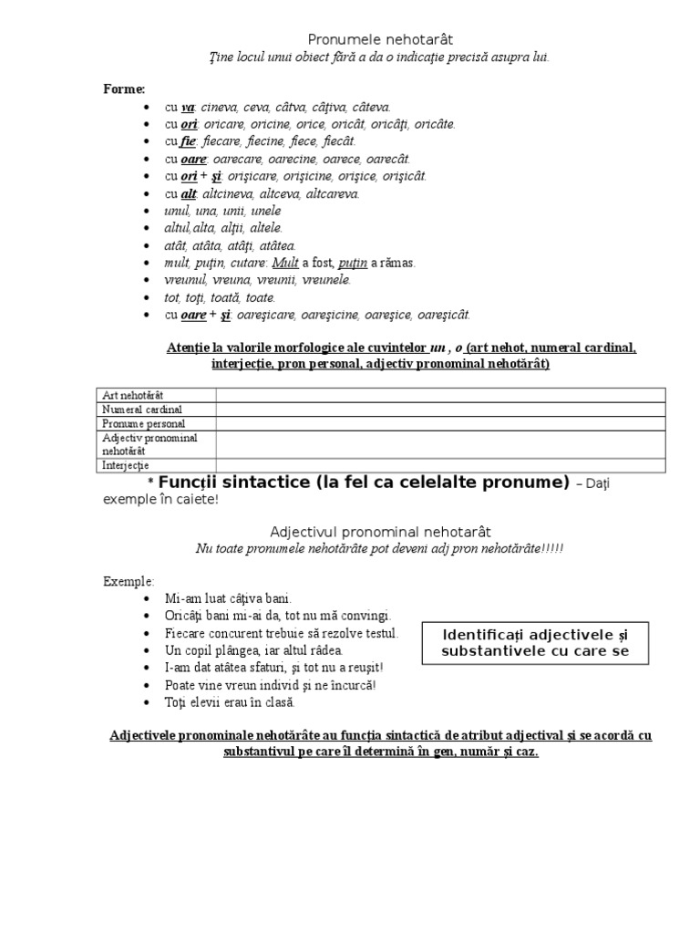 Pronumele Nehotărat și Adjectivul Pronominal Nehotărat E Pedia