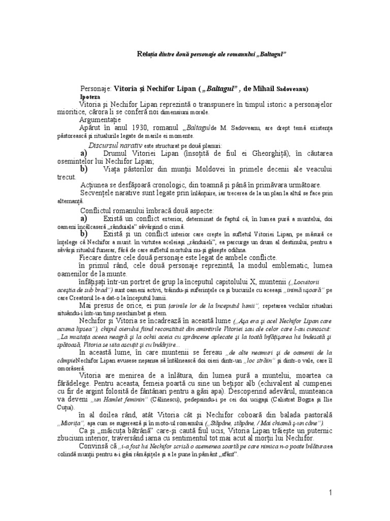 Baltagul Relatia Dintre Doua Personaje Varianta 1 Docx