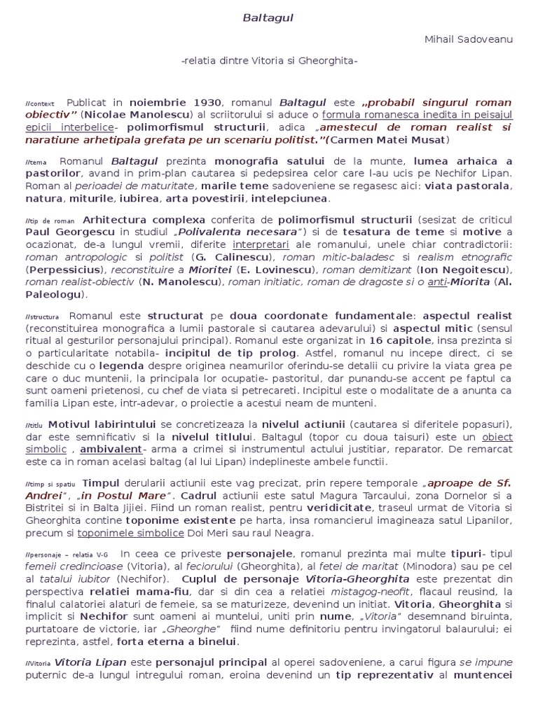 Relatia Dintre Doua Personaje Baltagul Vitoria Gheorghita
