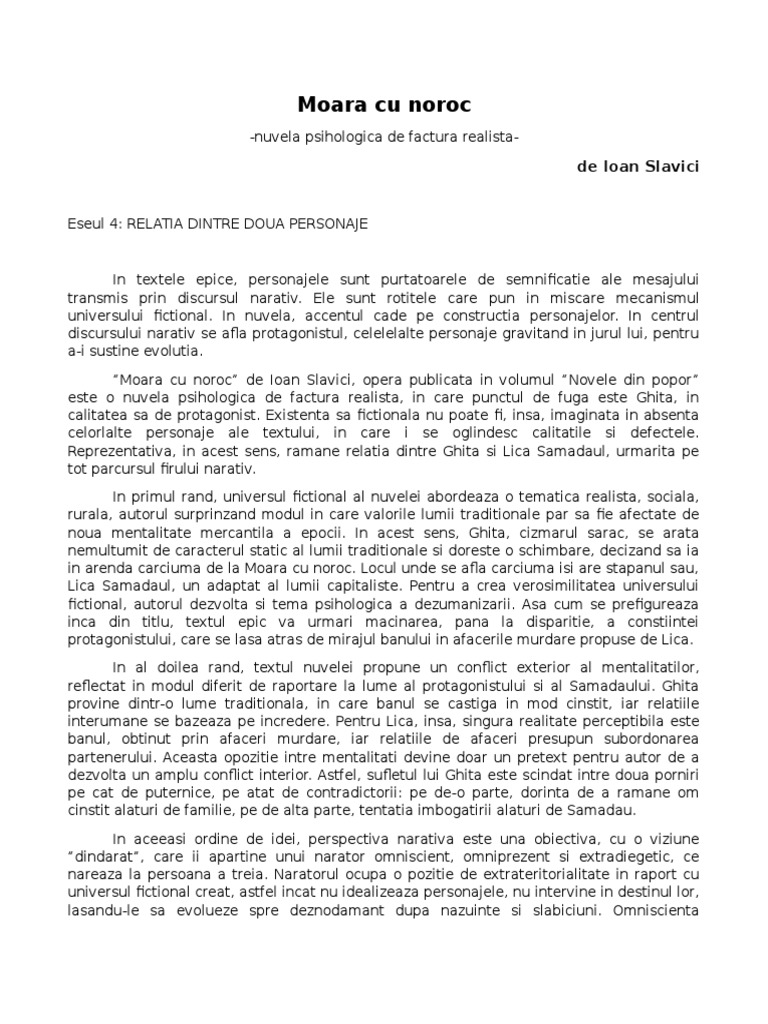 Doc Eseu Relatia Dintre Doua Personaje Moara Cu Noroc Albert Mihai Academia Edu