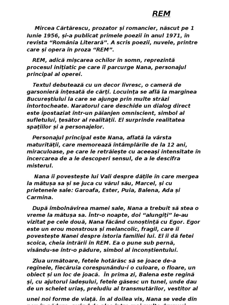 Comentariu Si Referat Rem De Mircea Cărtărescu Rezumate Cărți Citeste Cărți Online Pdf Caracterizări Referate Si Comentarii Cărți