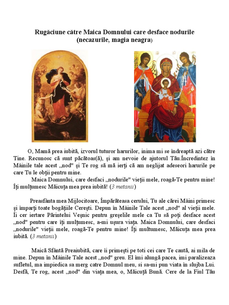 Rugaciune Catre Maica Domnului Care Desface Nodurile