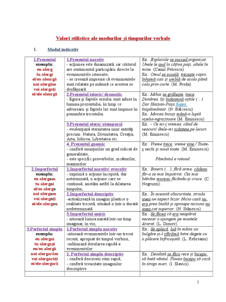 Valorile Stilistice Ale Timpurilor Verbale Pt Bac 2